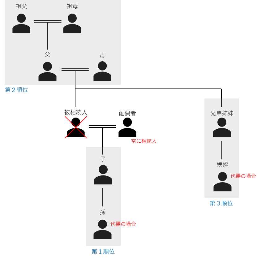 被相続人に子ども(や代襲者)がいる場合、以下の順位の人は相続人とはなりません。