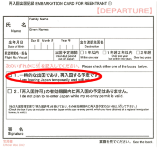 再入国出国記録(再入国EDカード)の再入国予定のチェック欄にチェックをし、これを入国審査官に提示するだけでいいです。