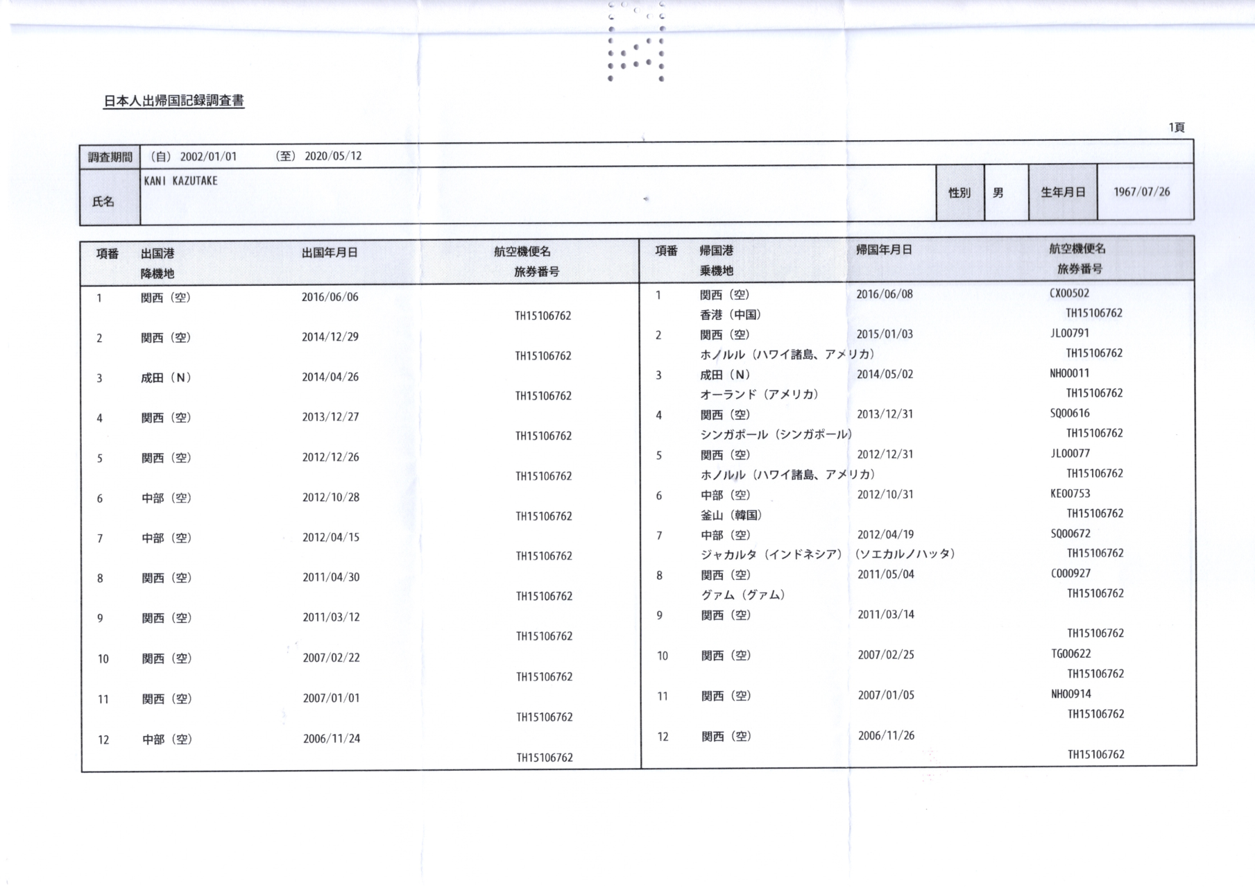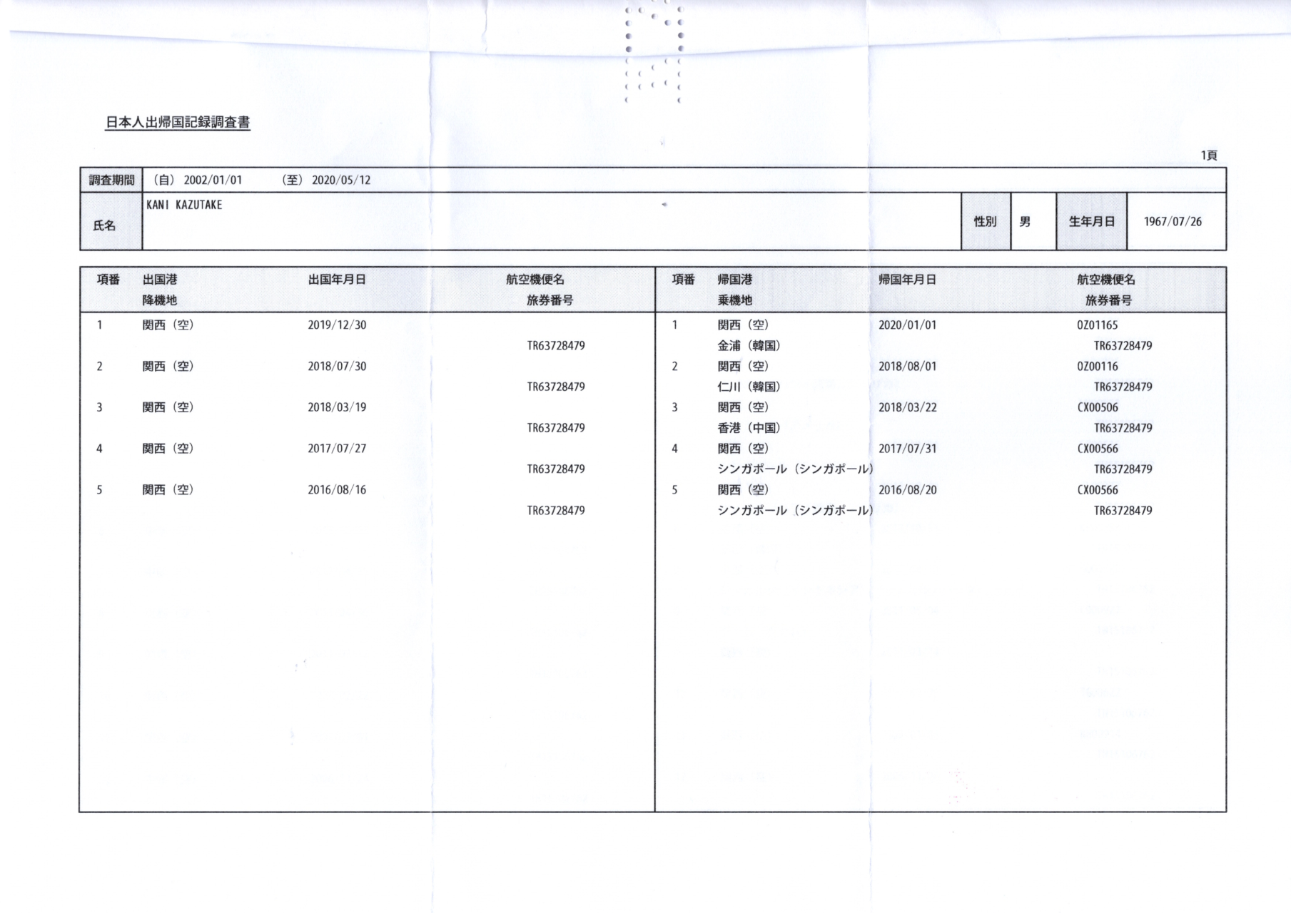 筆者の出入国記録を実際に請求してみました。何かの参考になれば幸いです。