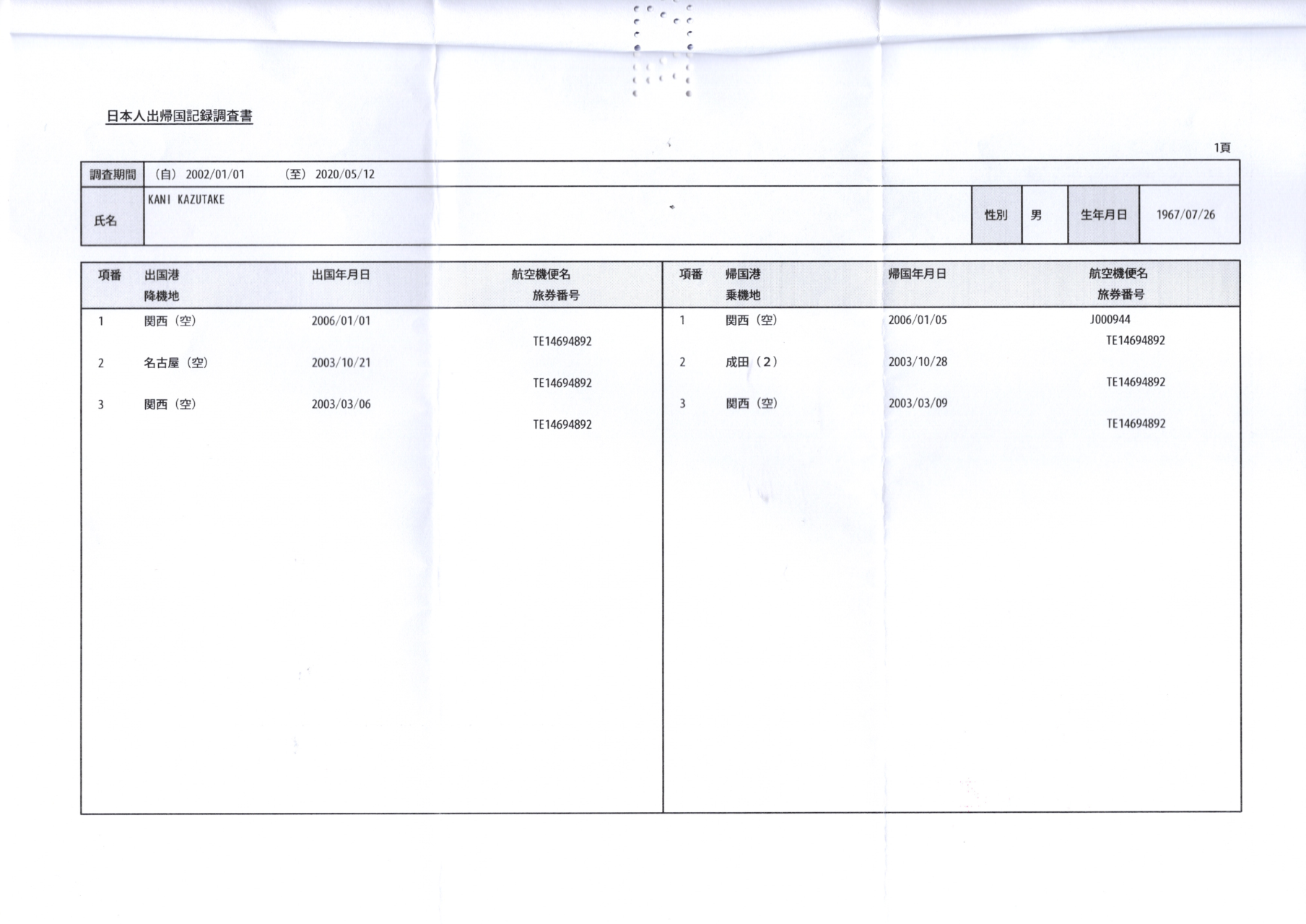 申請してから1ヶ月程度で、「出入国記録調査書」の送付があります。 -