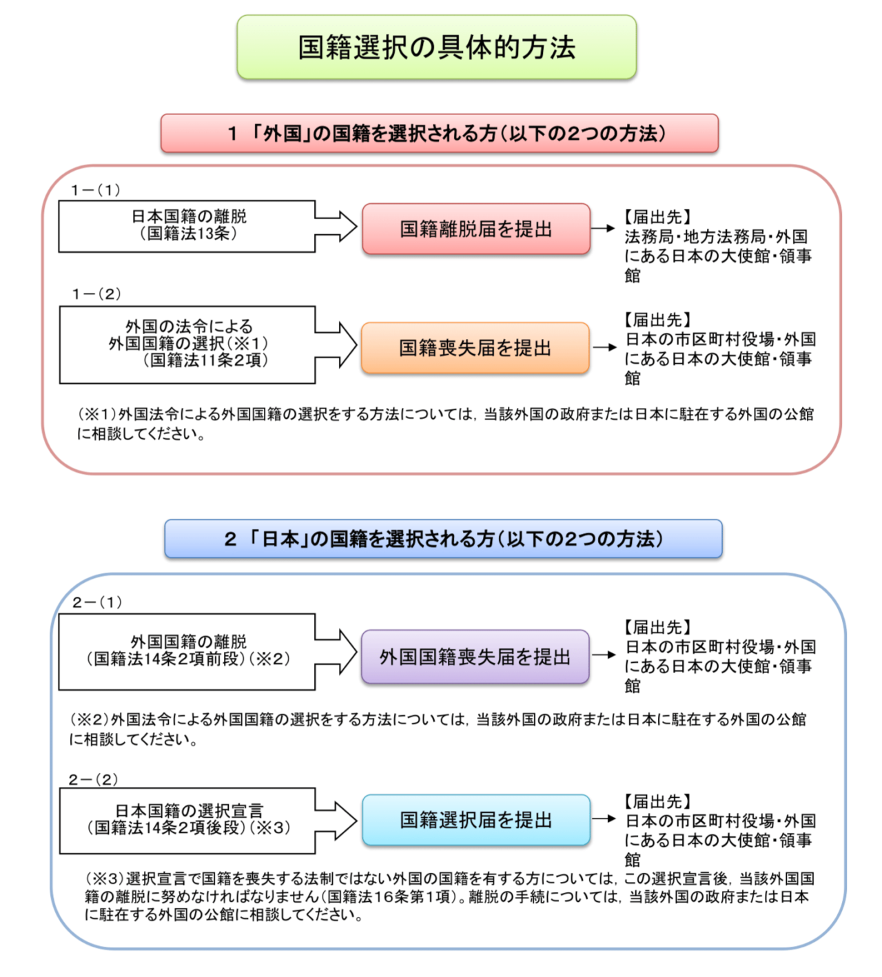 国籍の選択をする場合は、以下のいずれかの方法により選択することになります。