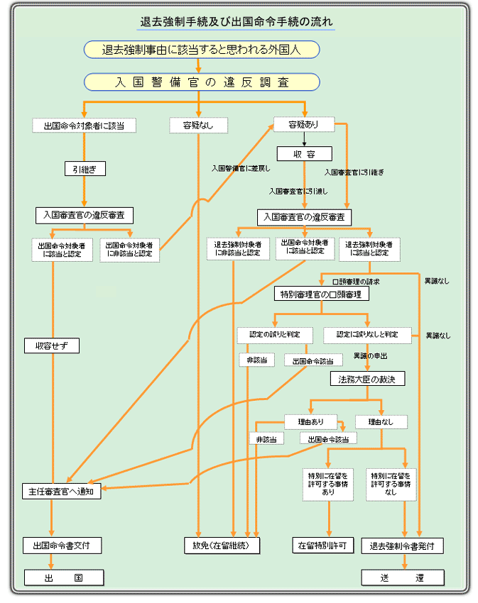 (出典:出入国在留管理庁 退去強制手続及びの出国命令手続きの流れ)