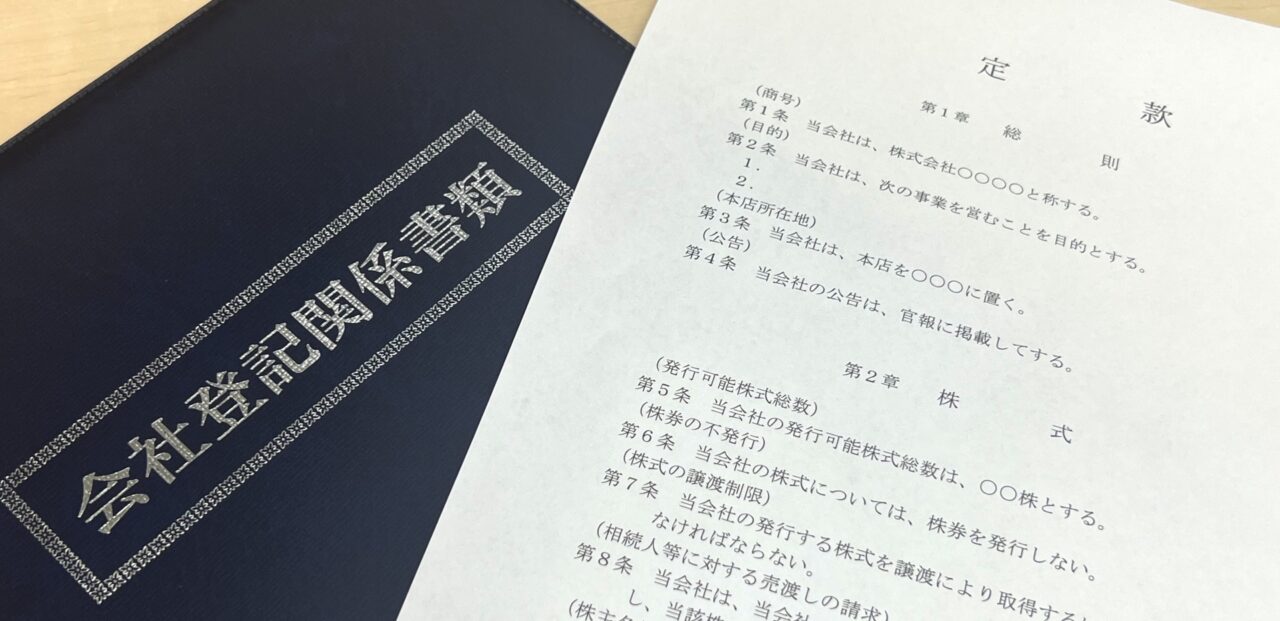 (定款に記載すべき事項についてはコチラをご覧ください。)